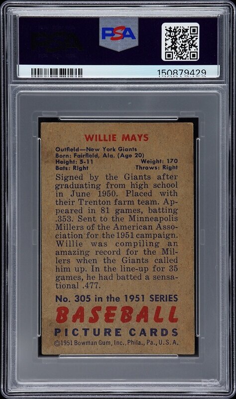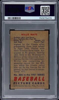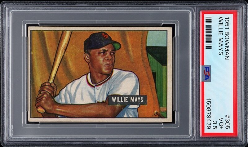 A 1951 Bowman Willie Mays Rookie Baseball Card No. 305 (PSA 3.5 VG+)