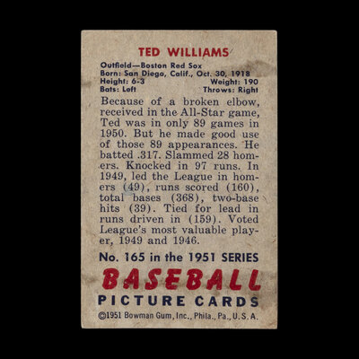 A 1951 Bowman Ted Williams Baseball Card No. 165