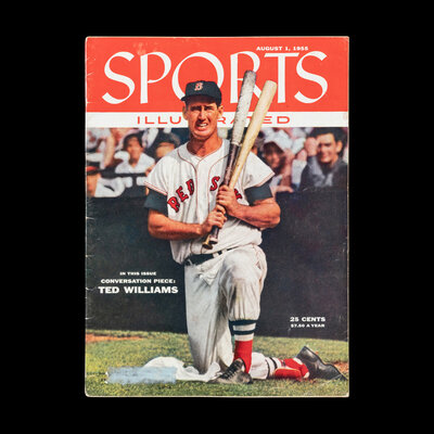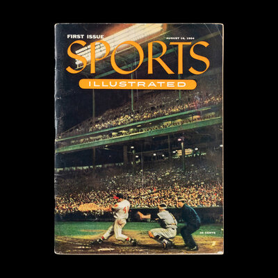 A 1954 Sports Illustrated First Issue with Topps Baseball Card Insert and August 1955 Issue Featuring Ted Williams