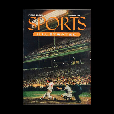 A 1954 Sports Illustrated First Issue with Topps Baseball Card Insert with Presentation Folio