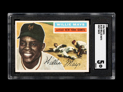 A 1956 Topps Willie Mays Gray Back Baseball Card No. 130 (SGC 5 EX)