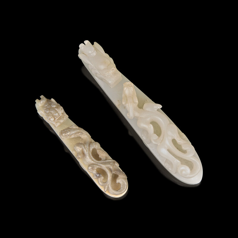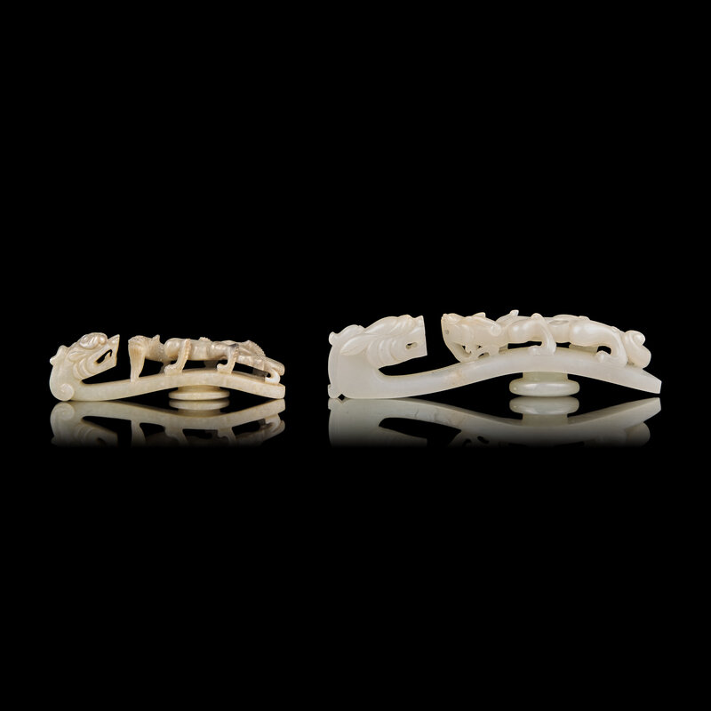 Two Chinese Jade "Dragons" Belthooks, Qing Dynasty