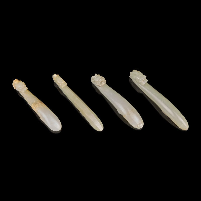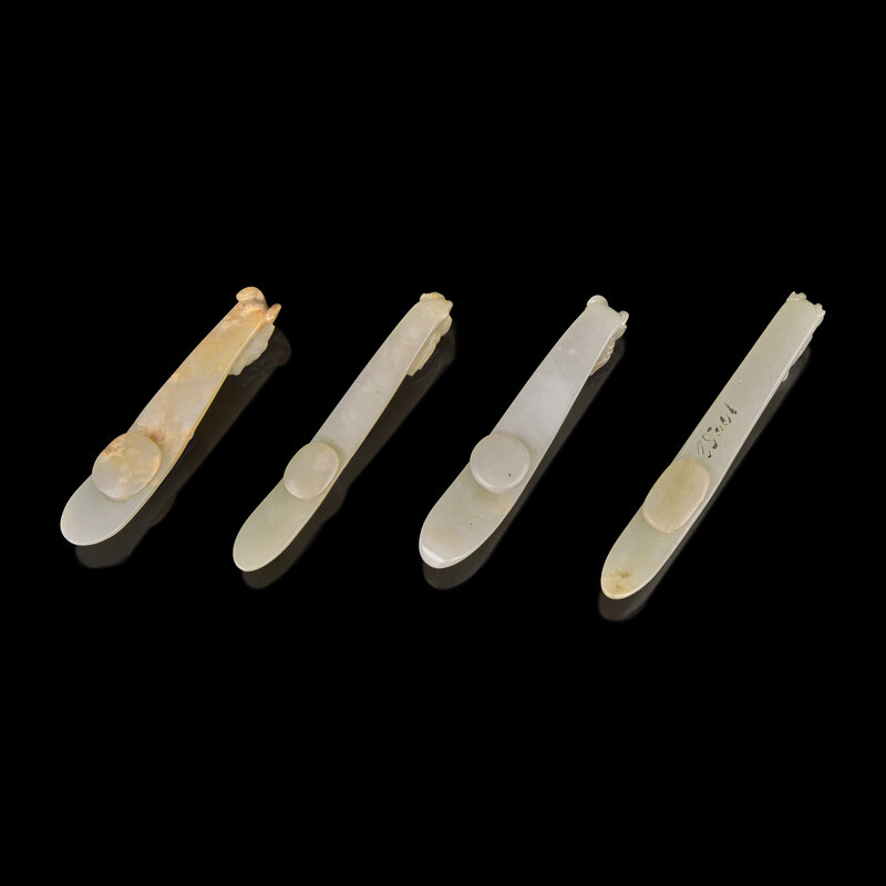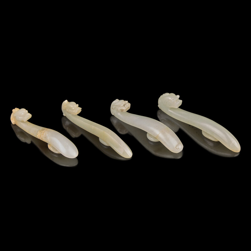 Four Pale Celadon Jade "Dragon" Belthooks, Qing Dynasty