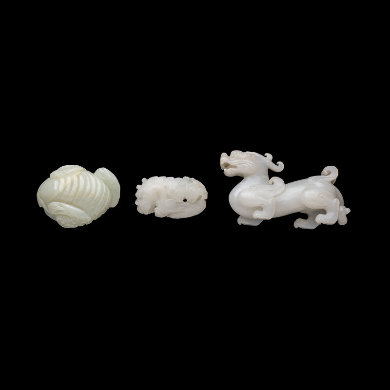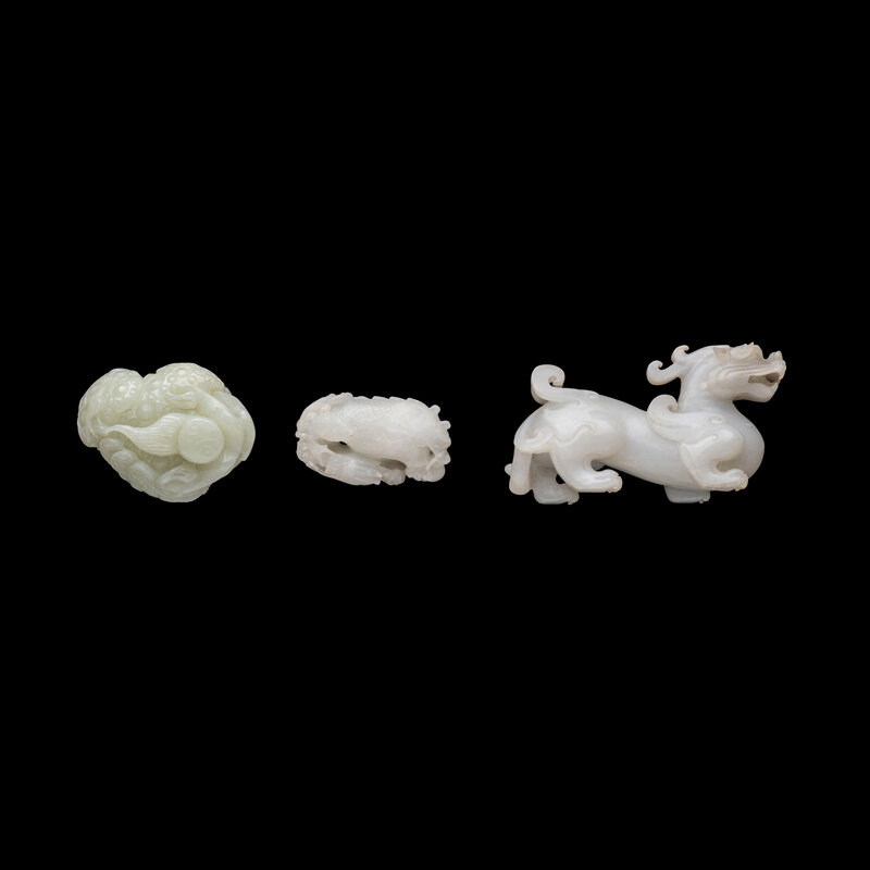 Three Chinese White Jade 'Mythical Beast' Jade Carvings, 20th Century