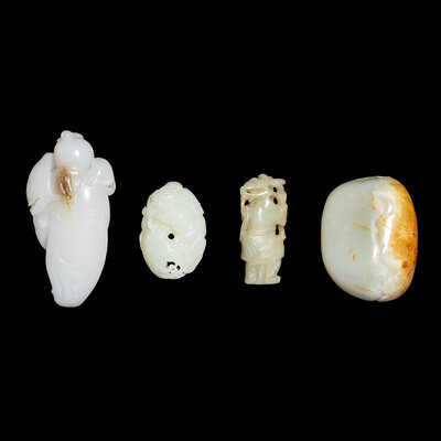 Four Chinese Celadon and White Jade Carvings, 20th Century
