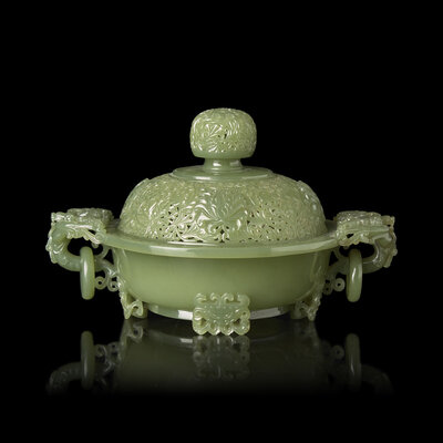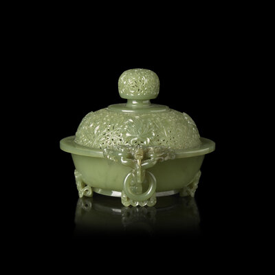 A Chinese Reticulated Celadon Jade Covered Incense Burner