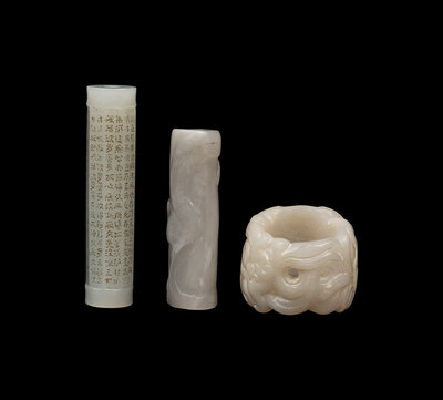 Three Chinese White Jade Scholar's Objects, 20th Century
