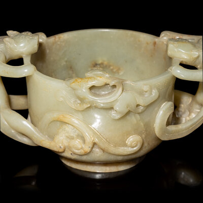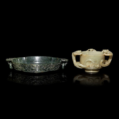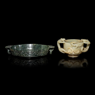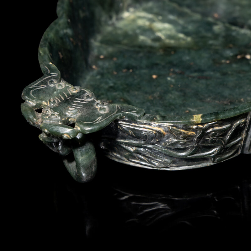 The first a pale celadon jade 'dragon' washer, the second is a spinach jade begonia-shaped washer.
