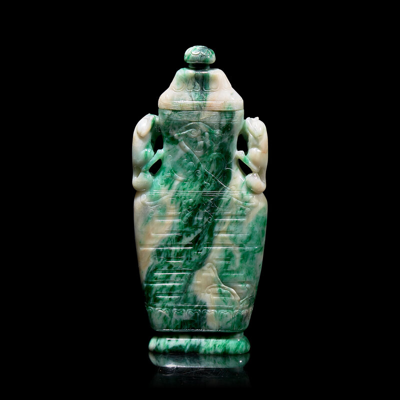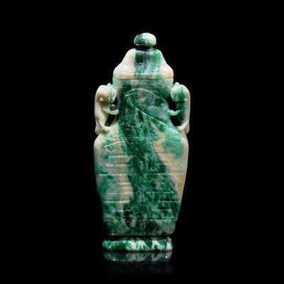 翡翠夔龍紋雙耳蓋瓶