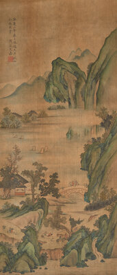 Ink and color on silk, hanging scroll.