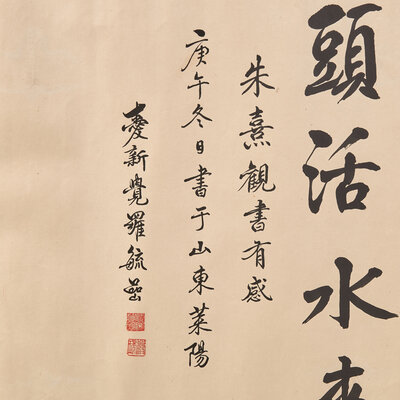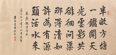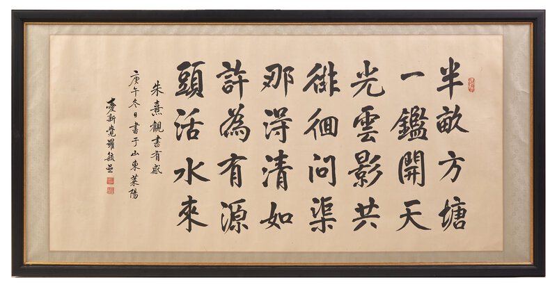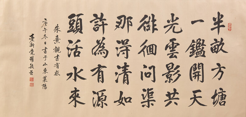 款識:朱熹《觀書有感》。庚午(1990)冬日書于山東萊陽,爱新觉罗·毓喦。