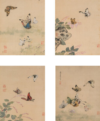 Four Chinese Paintings Depicting Butterflies