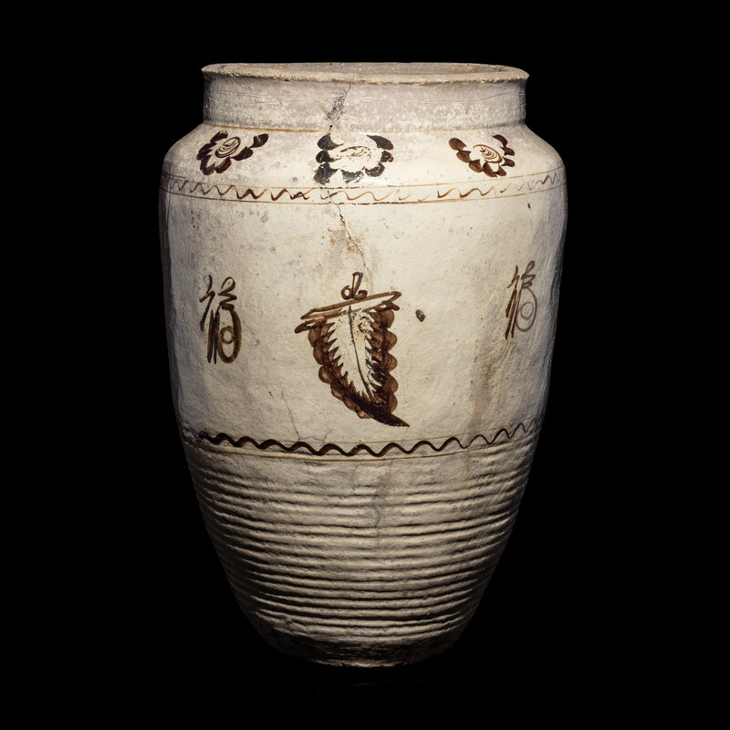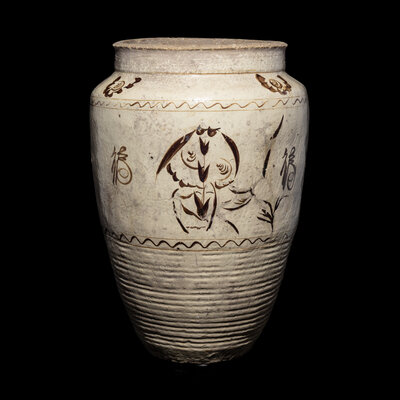 A Large Chinese Painted Cizhou Porcelain Jar, Yuan/Ming Dynasty