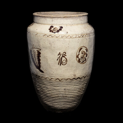 元/明 磁州窑白地黑花花卉紋大罐