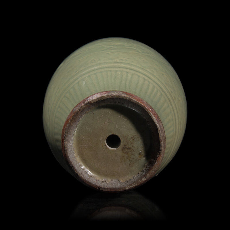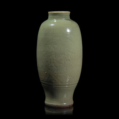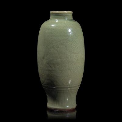 A Chinese Incised Longquan Celadon Ovoid Vase, Ming Dynasty