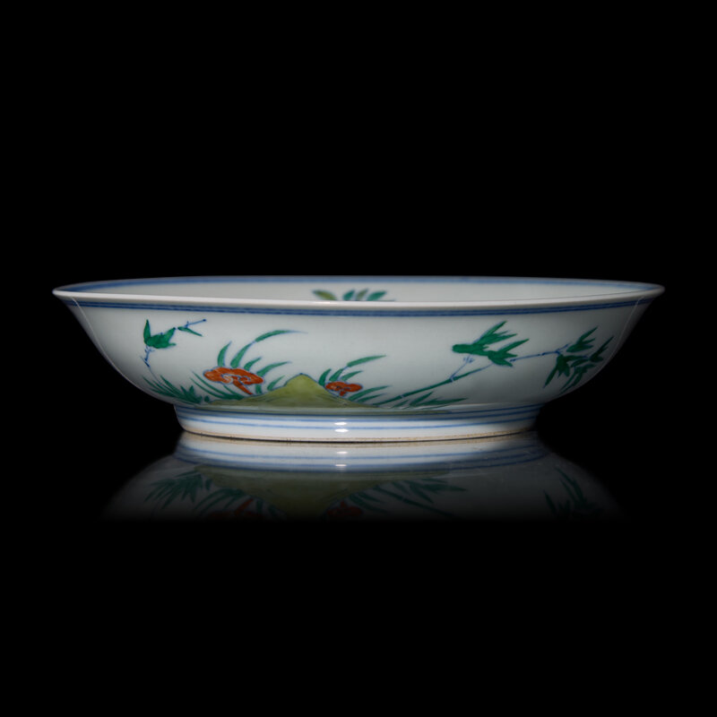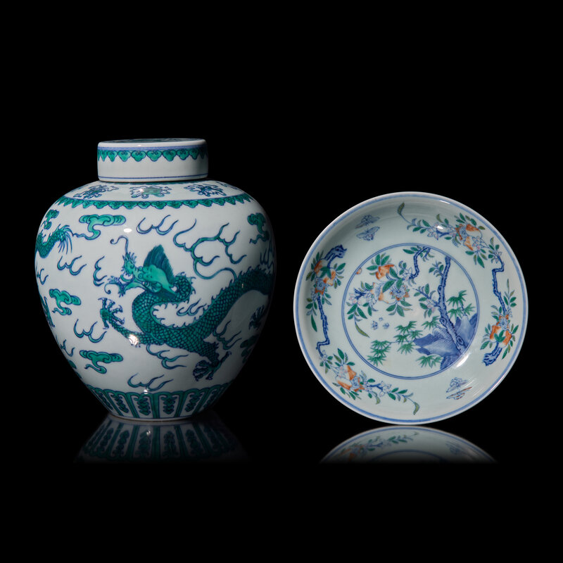 A Chinese Doucai Decorated Dish and a "Dragon" Jar and Cover