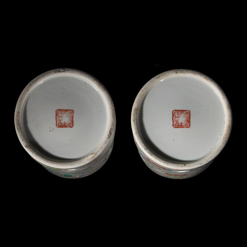 A Pair of Chinese Famile Rose Porcelain Hat Stands, Tongzhi Period