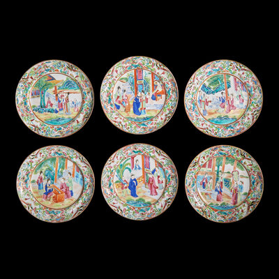 A Set of Six Chinese Export "Rose Mandarin" Luncheon or Dessert Plates, Second Half 19th Century