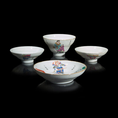 清中晚期 粉彩無雙譜瓷器四件