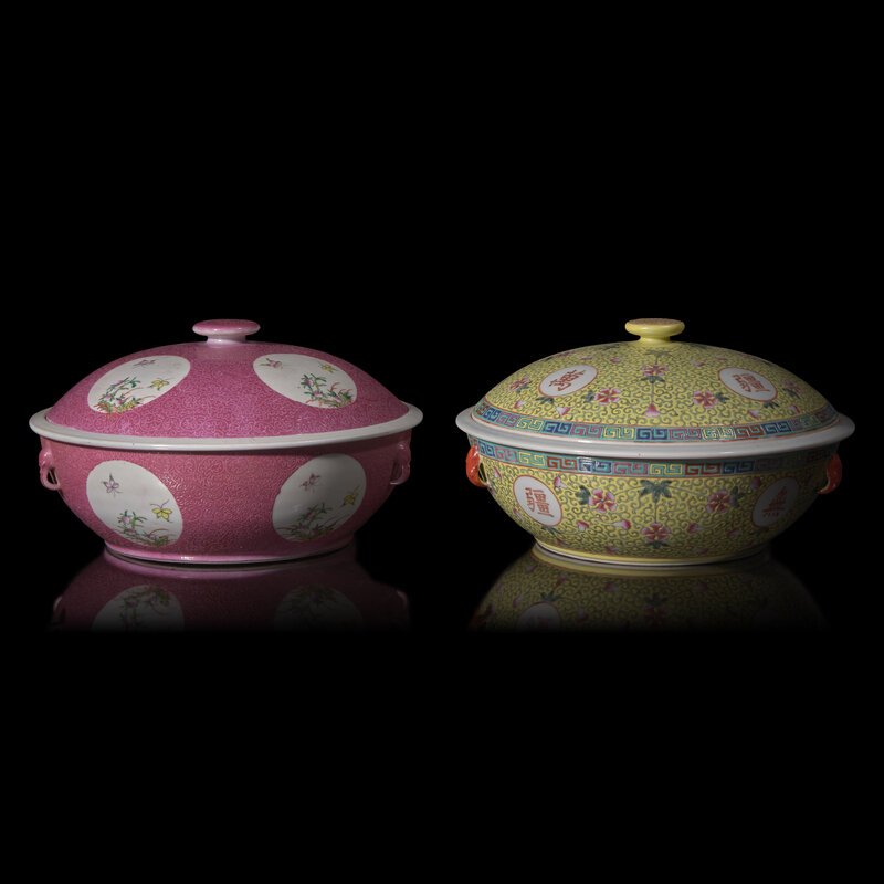 Two Chinese Famille Rose Porcelain Covered Bowls