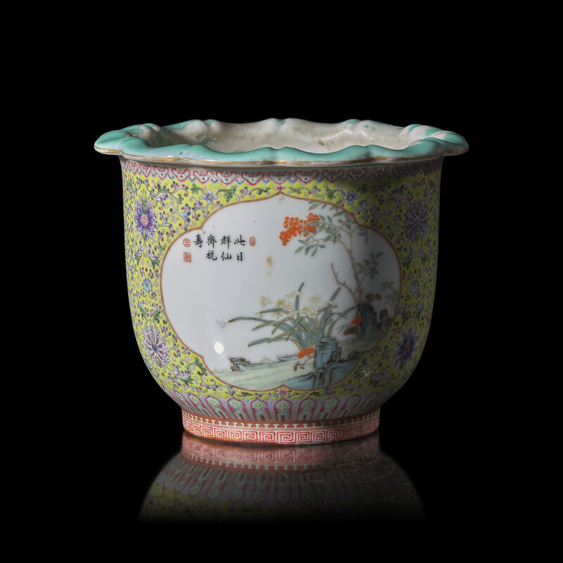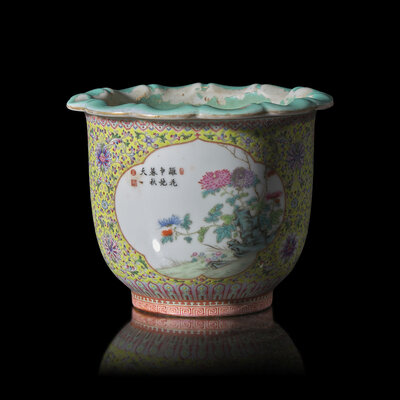 A Chinese Yellow Ground Porcelain Floriform Planter