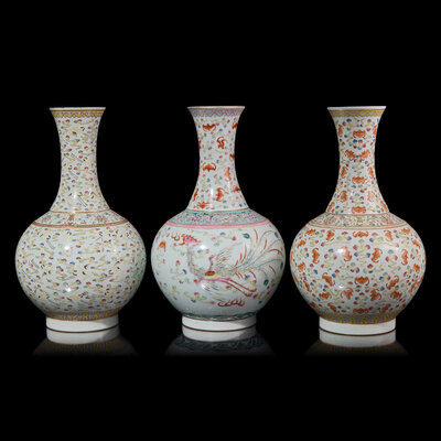 Three Chinese Famille Rose Enameled Porcelain Vases