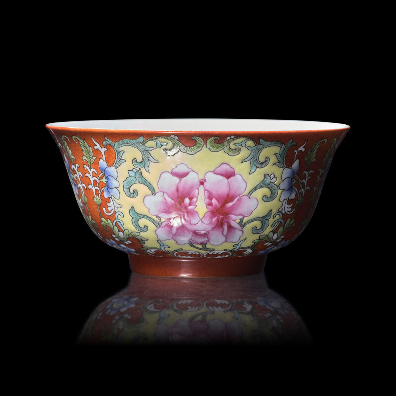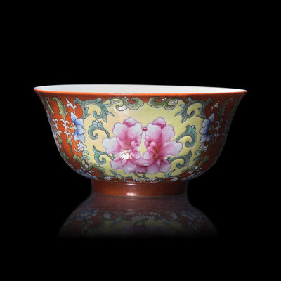 A Chinese Coral-Red Ground Famille Rose Porcelain Bowl