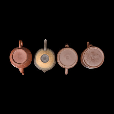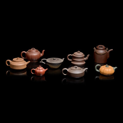 A Group of Eight Assorted Yixing Zisha Stoneware Teapots