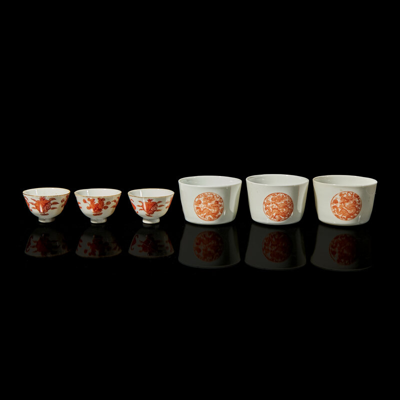 Six Chinese Iron Red Decorated Porcelain Cups, Late 19th-Early 20th Century