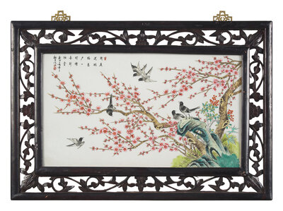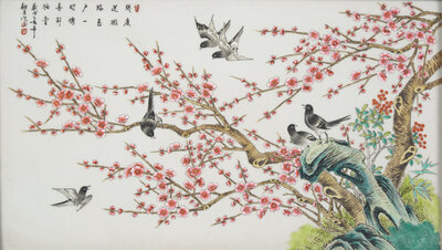 粉彩花鳥圖掛屏