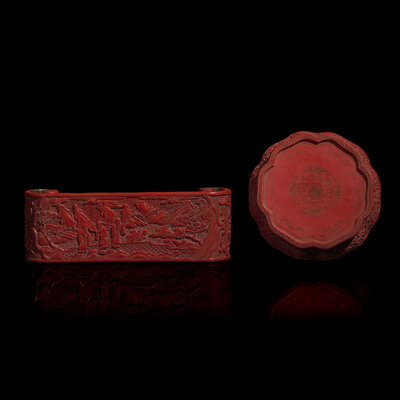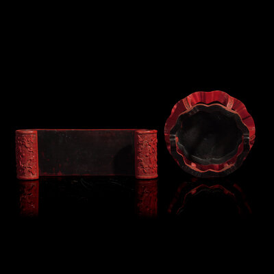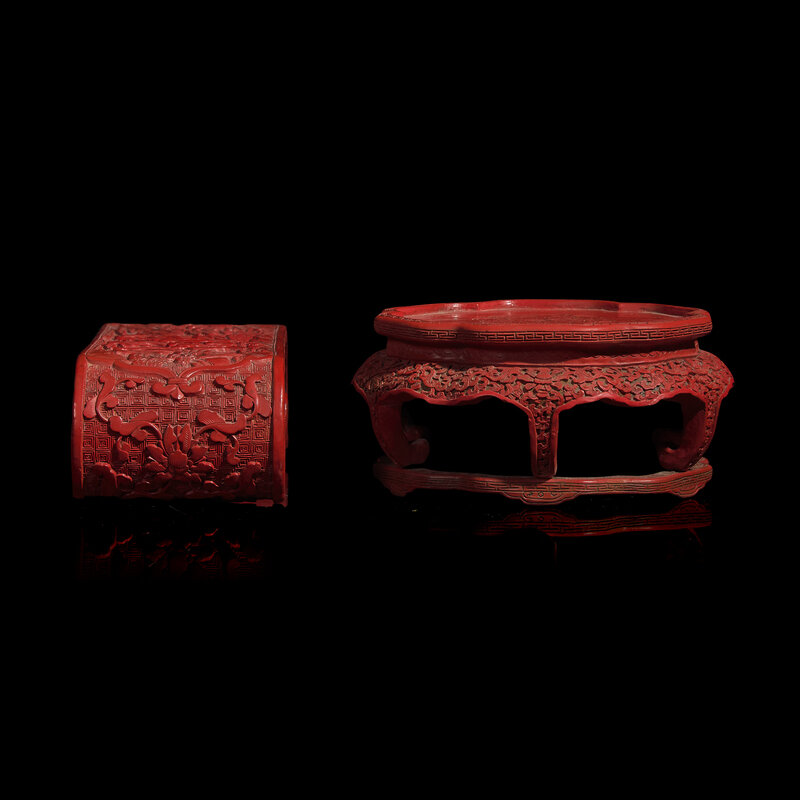 晚清民國 剔紅座子兩件