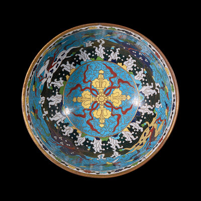 A Chinese Cloisonné 'Hai Ma' Bowl