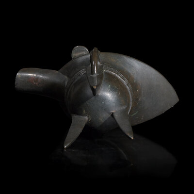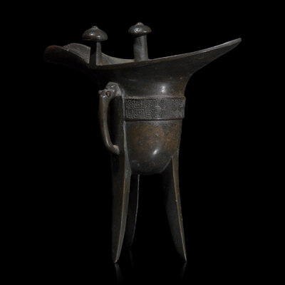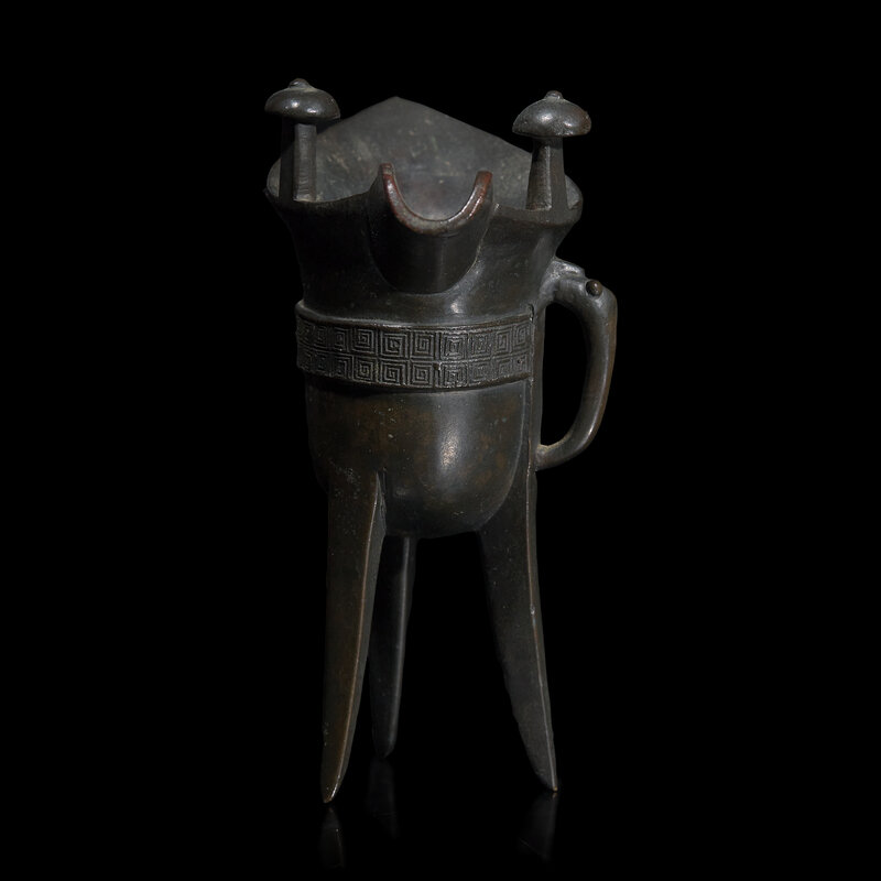 A Chinese Archaistic Patinated Bronze Jue Wine Cup, Late Ming to Qing Dynasty