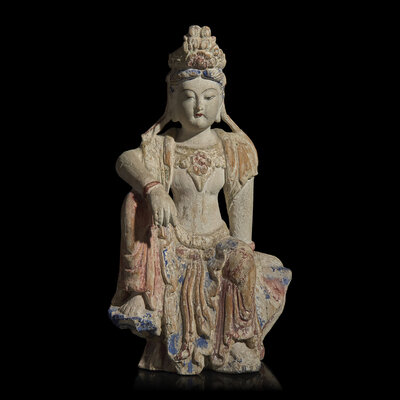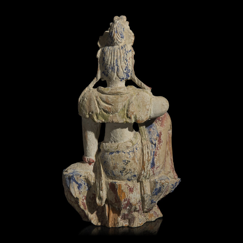 A Chinese Polychrome Painted Wood Figure of Guanyin
