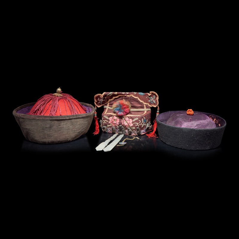 Three Chinese Silk Hats, Late Qing Dynasty