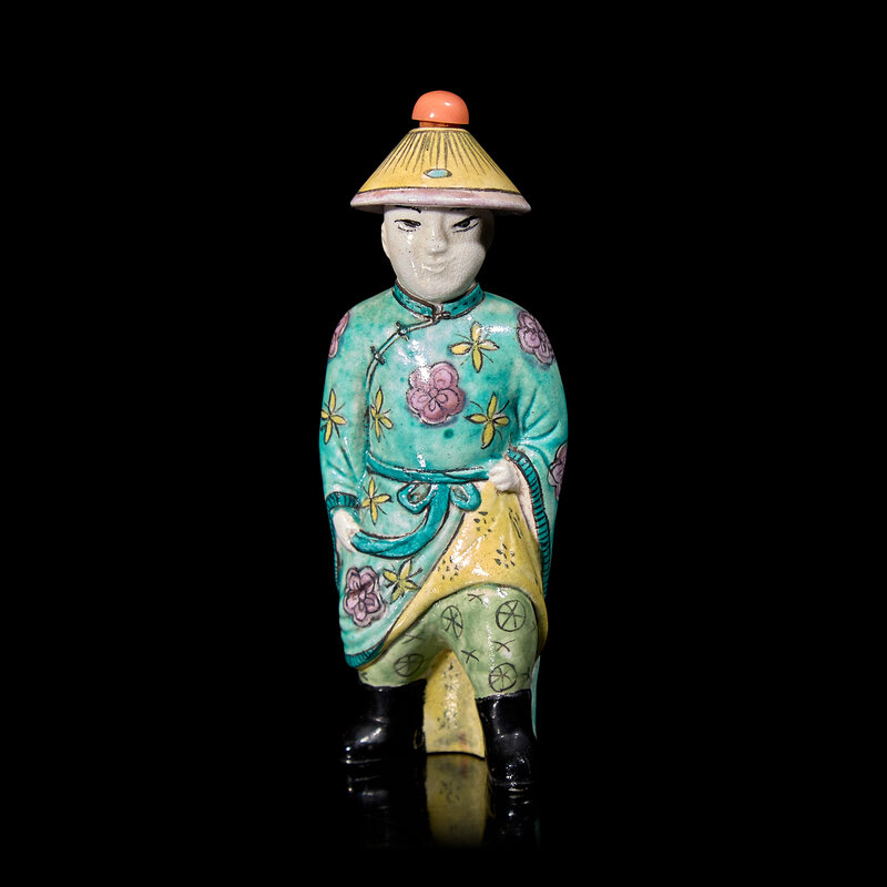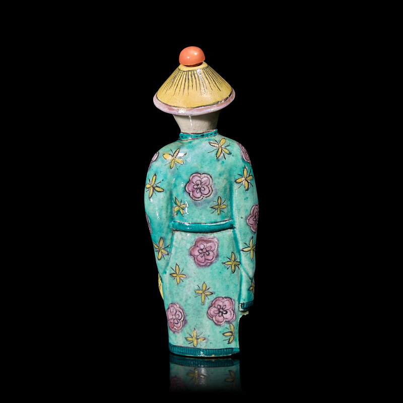 A Chinese Enameled Porcelain Figural Snuff Bottle