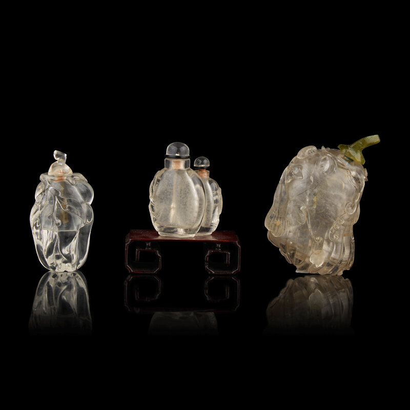 Three Chinese Rock Crystal Snuff Bottles, 19th-20th Century