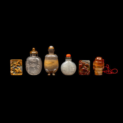 瑪瑙鼻烟壺、牌子一組六件