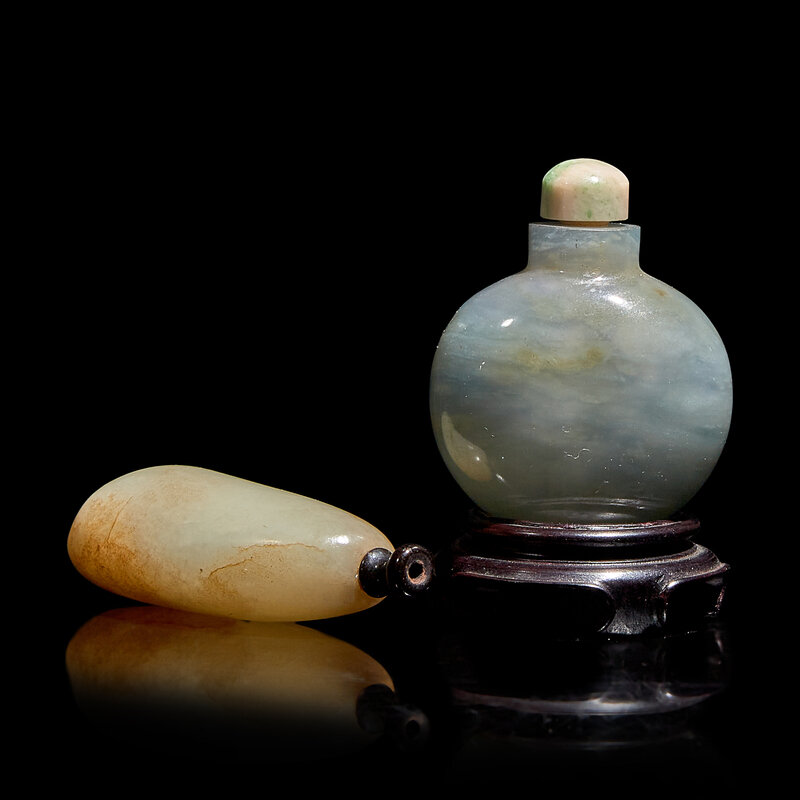 Two Chinese Jade and Jadeite Snuff Bottles, 19th-20th Century