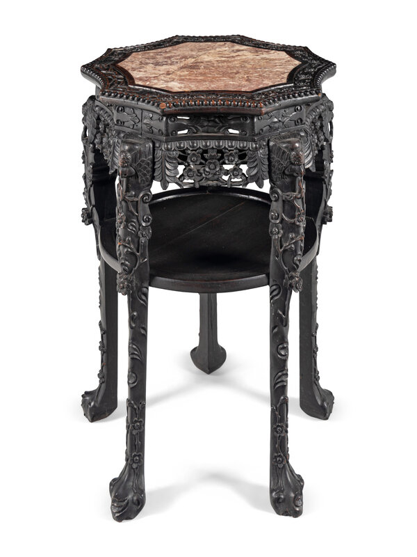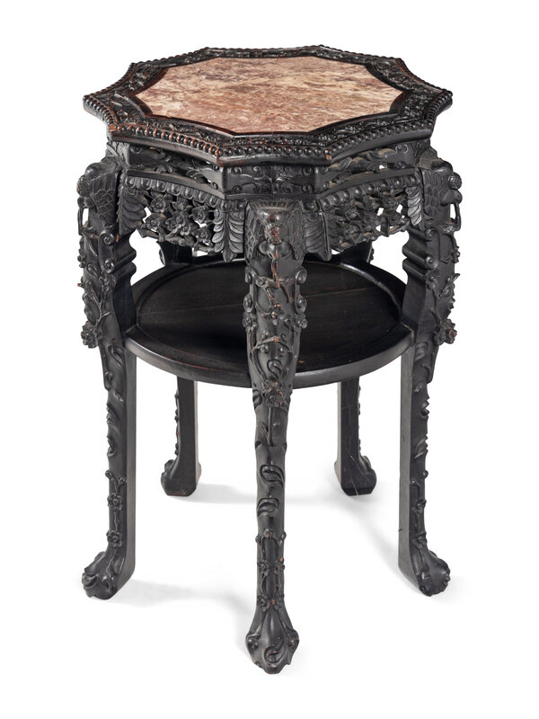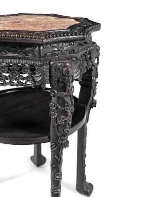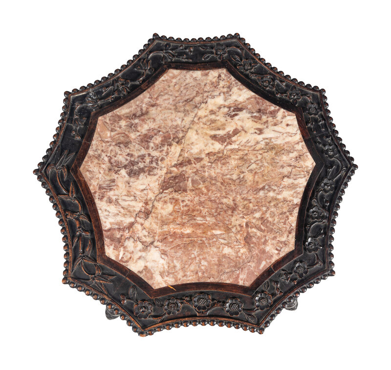 A Chinese Carved Hardwood Marble-Inset Side Table, 19th Century