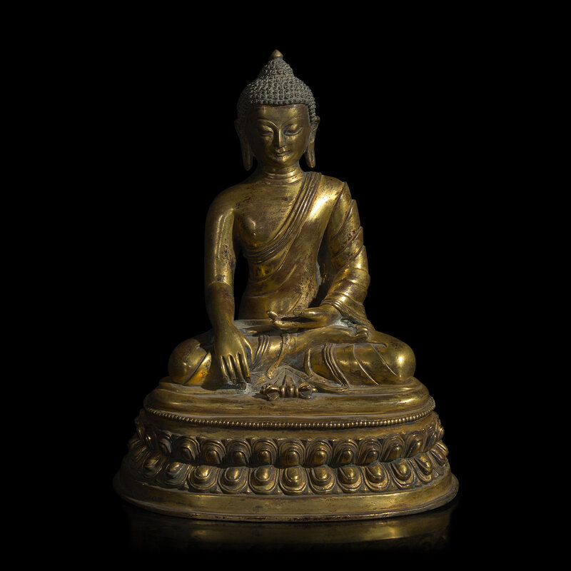 A Tibeto-Chinese Gilt Bronze Figure of Akshobhya