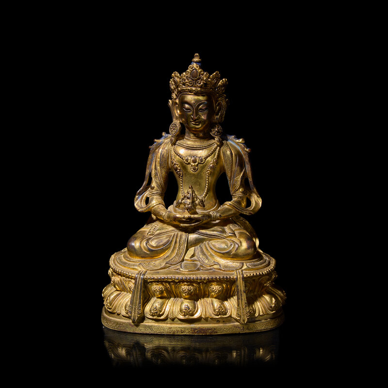 A Tibeto-Chinese Gilt Bronze Figure of Amitayus