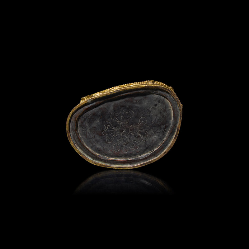 The seated bodhisattva seated in vajrasana, holding a vase of immortality, base plate engraved with a visvavajra.