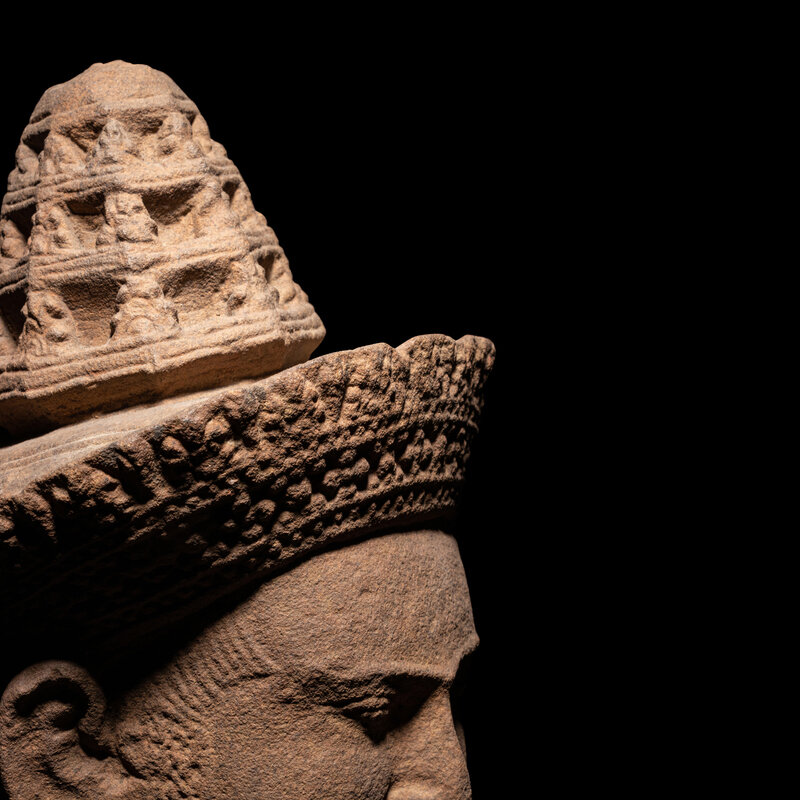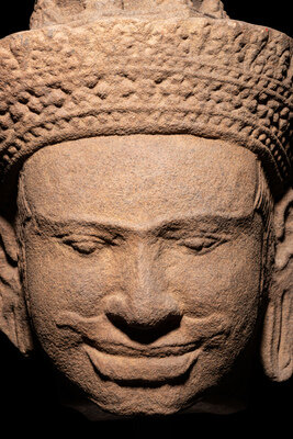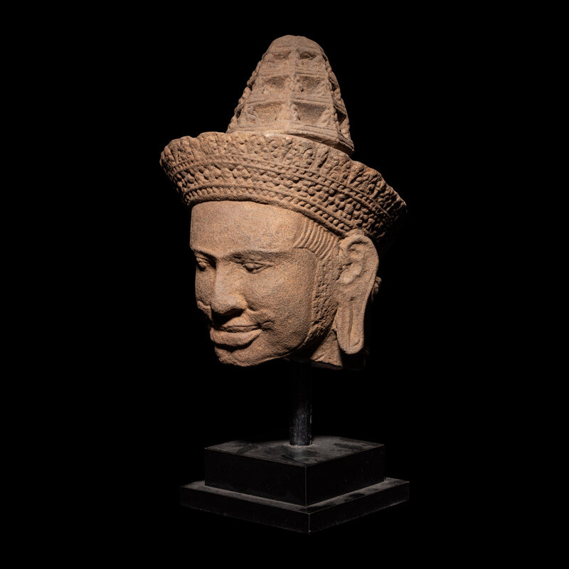 A Khmer Sandstone Head of a Male Divinity, Angkor Wat Style