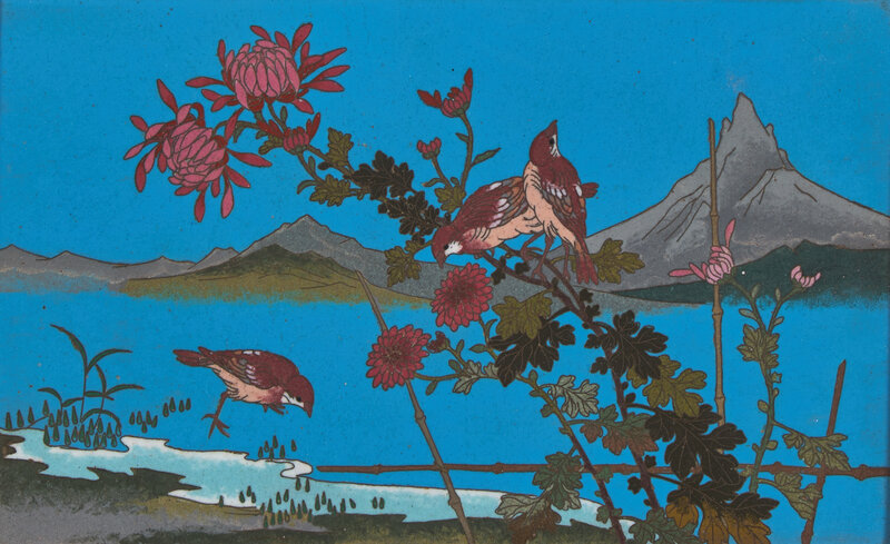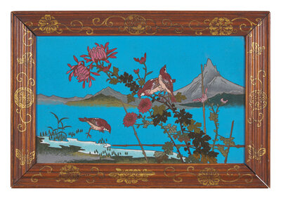 A Japanese Framed Cloisonné "Birds" Panel