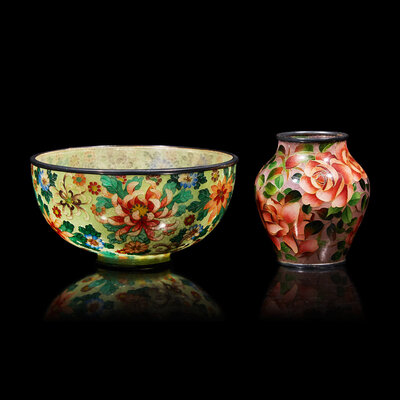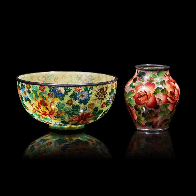 A Small Japanese Plique a Jour Vase, Hattori Tadasaburo, and a Small Bowl