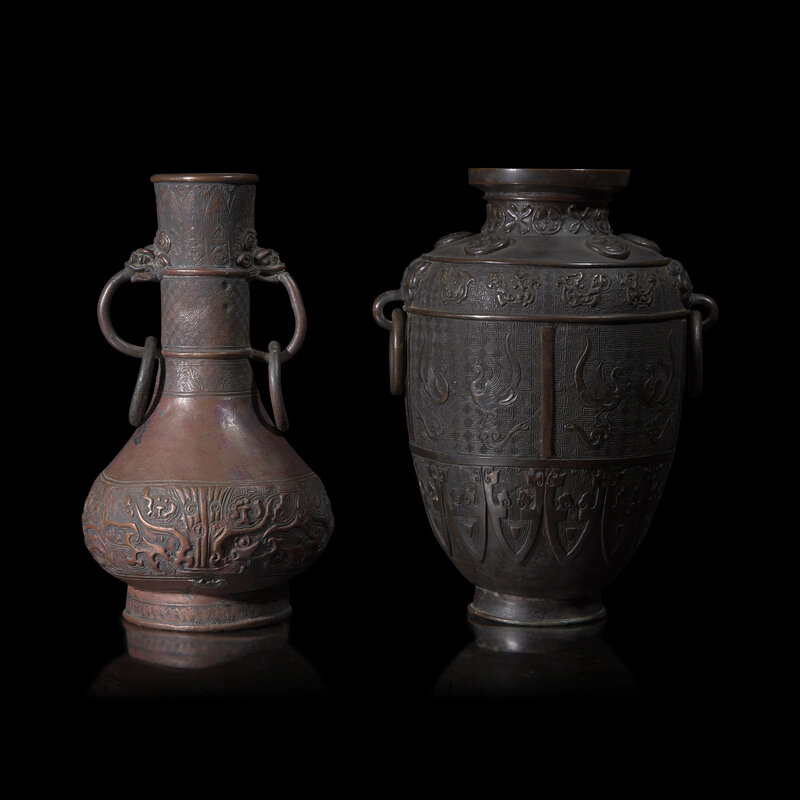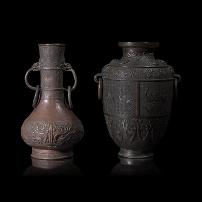 Two Japanese Bronze Archaistic Vases, Edo to Meiji Period