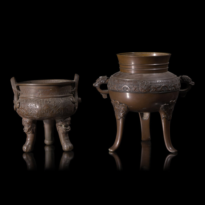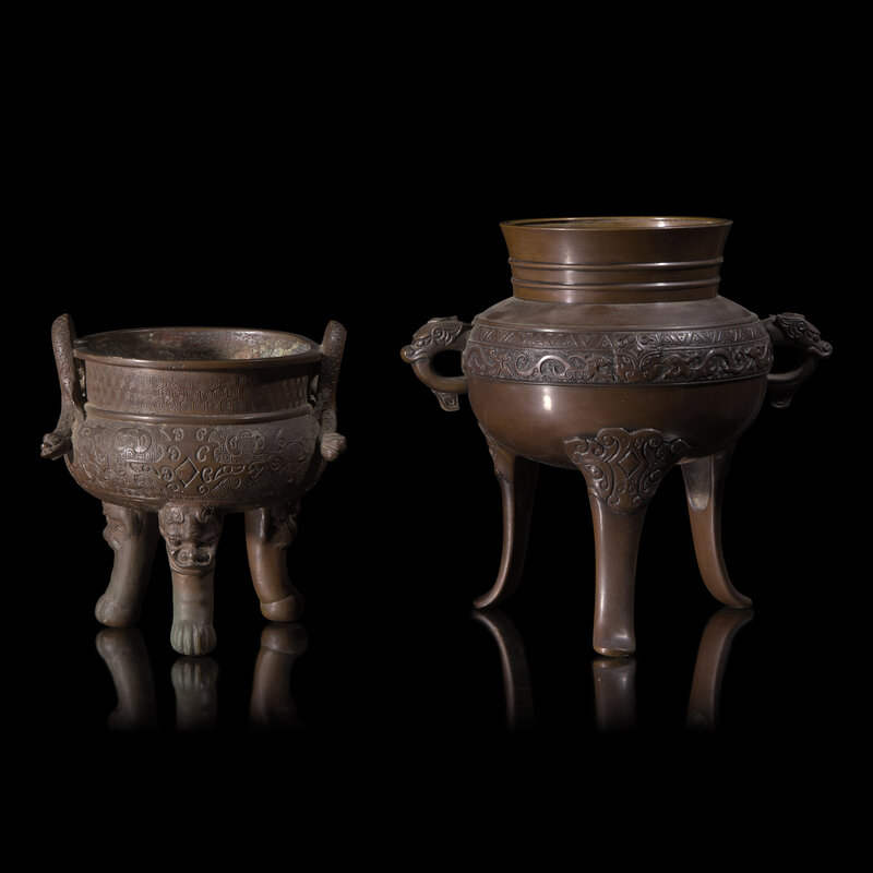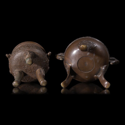 Two Japanese Bronze Tripod Incense Burners