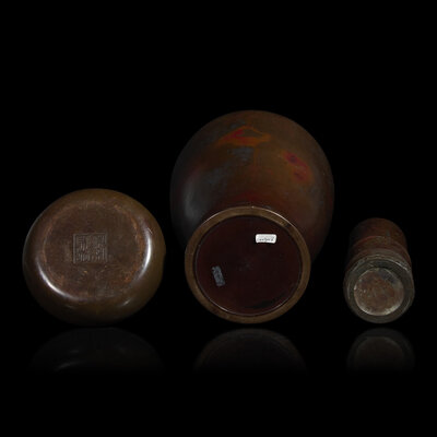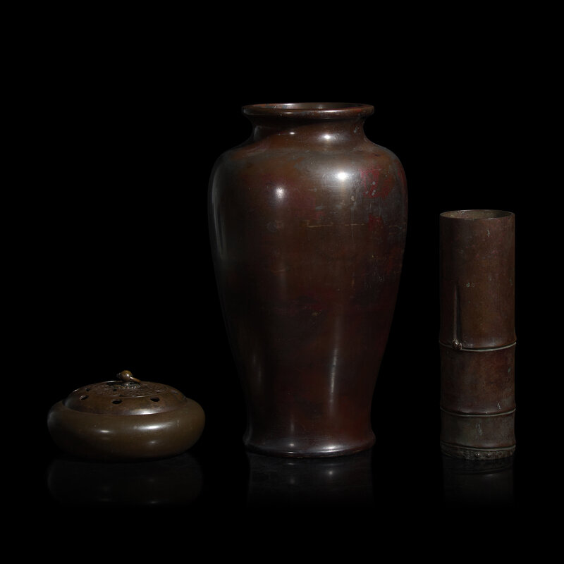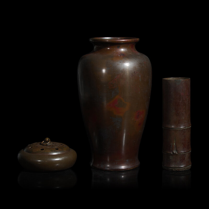 Three Japanese Patinated Bronze Articles