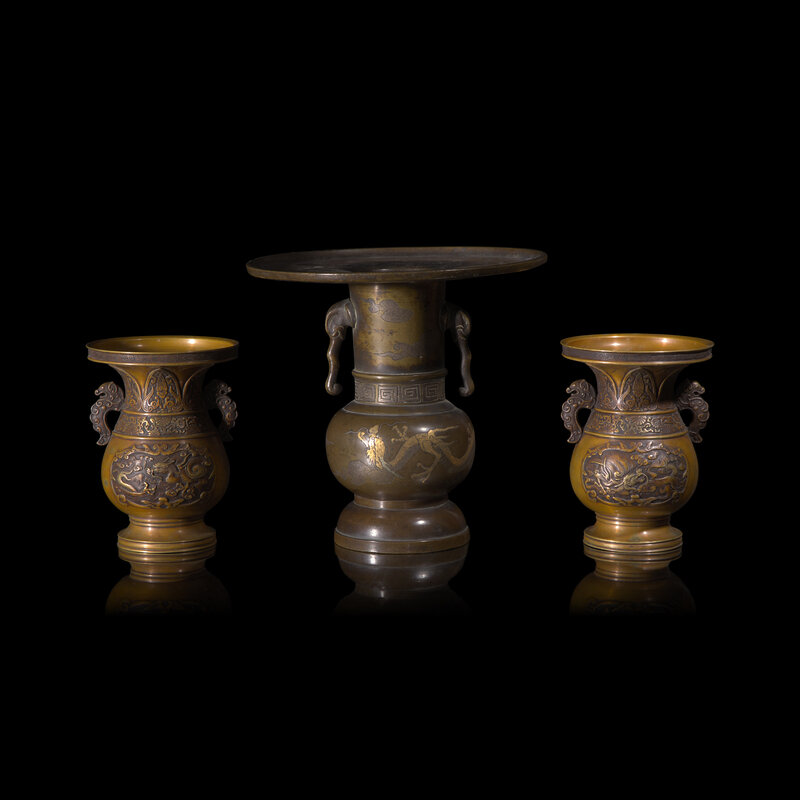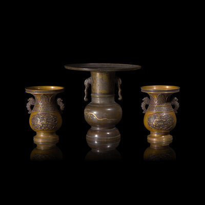 Three Japanese Bronze Vases, Late Edo to Meiji Period